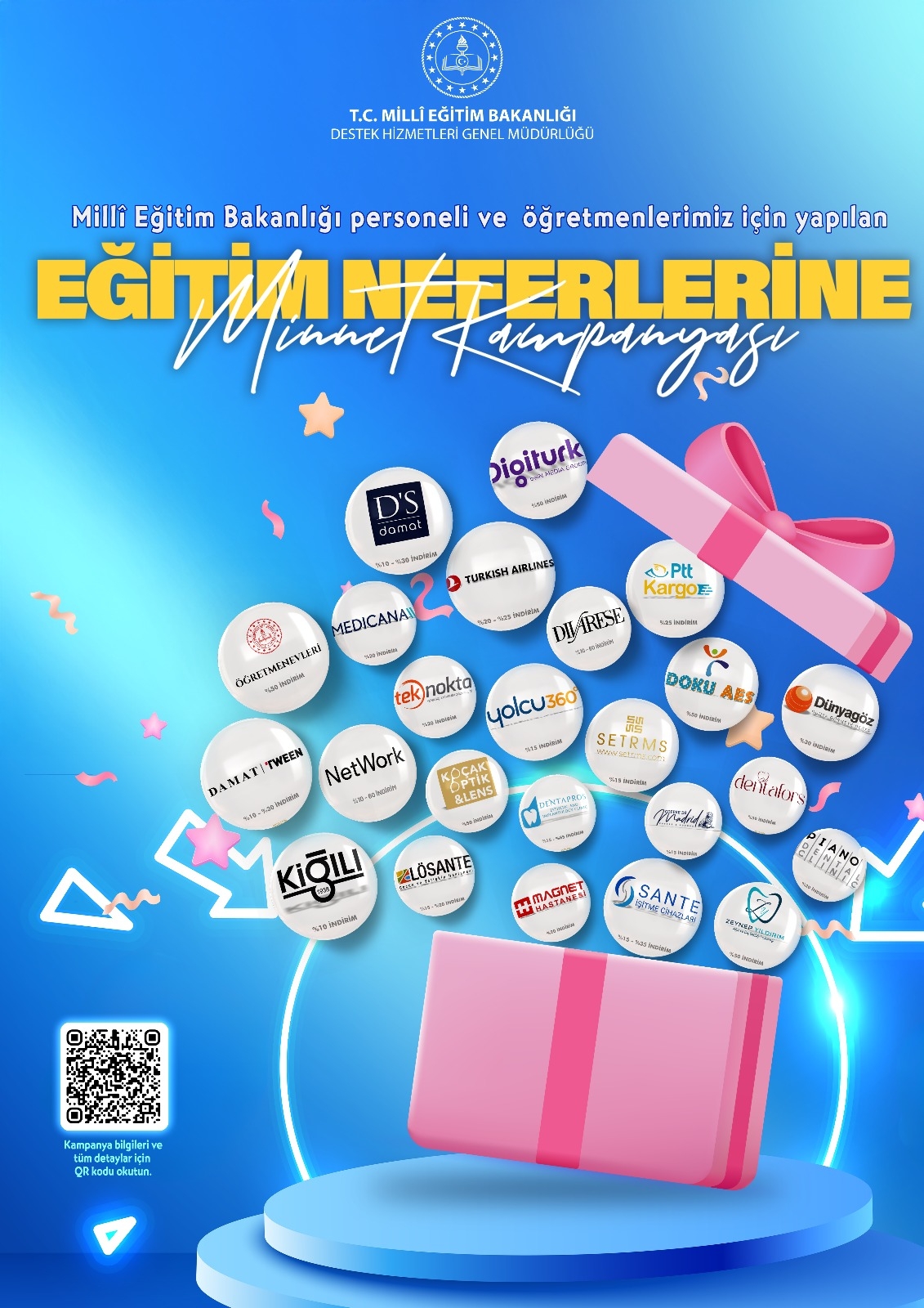 MEB Minnet Kampanyası kapsamında öğretmen ve personeller için kampanya bilgileri QR kodu okutularak faydalanılabilicektir.
